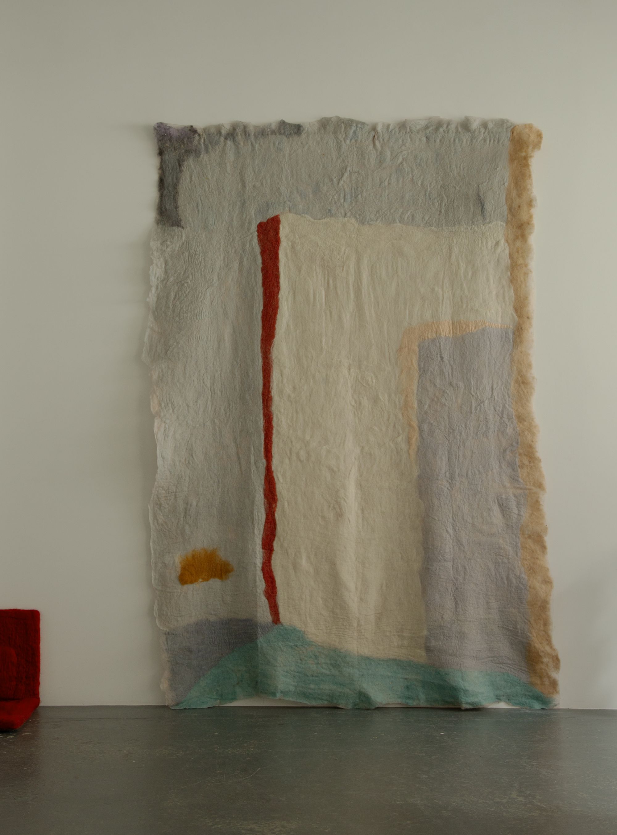Mariana Chkonia (b. 1969) is an artist who lives and works between Tbilisi and Nukriani. In her prac- tice, she revives ancient felting traditions that have existed for centuries in the Tusheti, Kakheti, Khevi and Javakheti regions of Georgia. Today, these techniques have all but fallen out of use, and so Chkonia combines archival research with her own interpretation of felting methods to create her monumental, sculptural textile works: “I wanted to do something that I could not imagine, and make it bigger than myself. I wanted something to happen in the process that would drive me crazy,” she has said of producing her pieces.