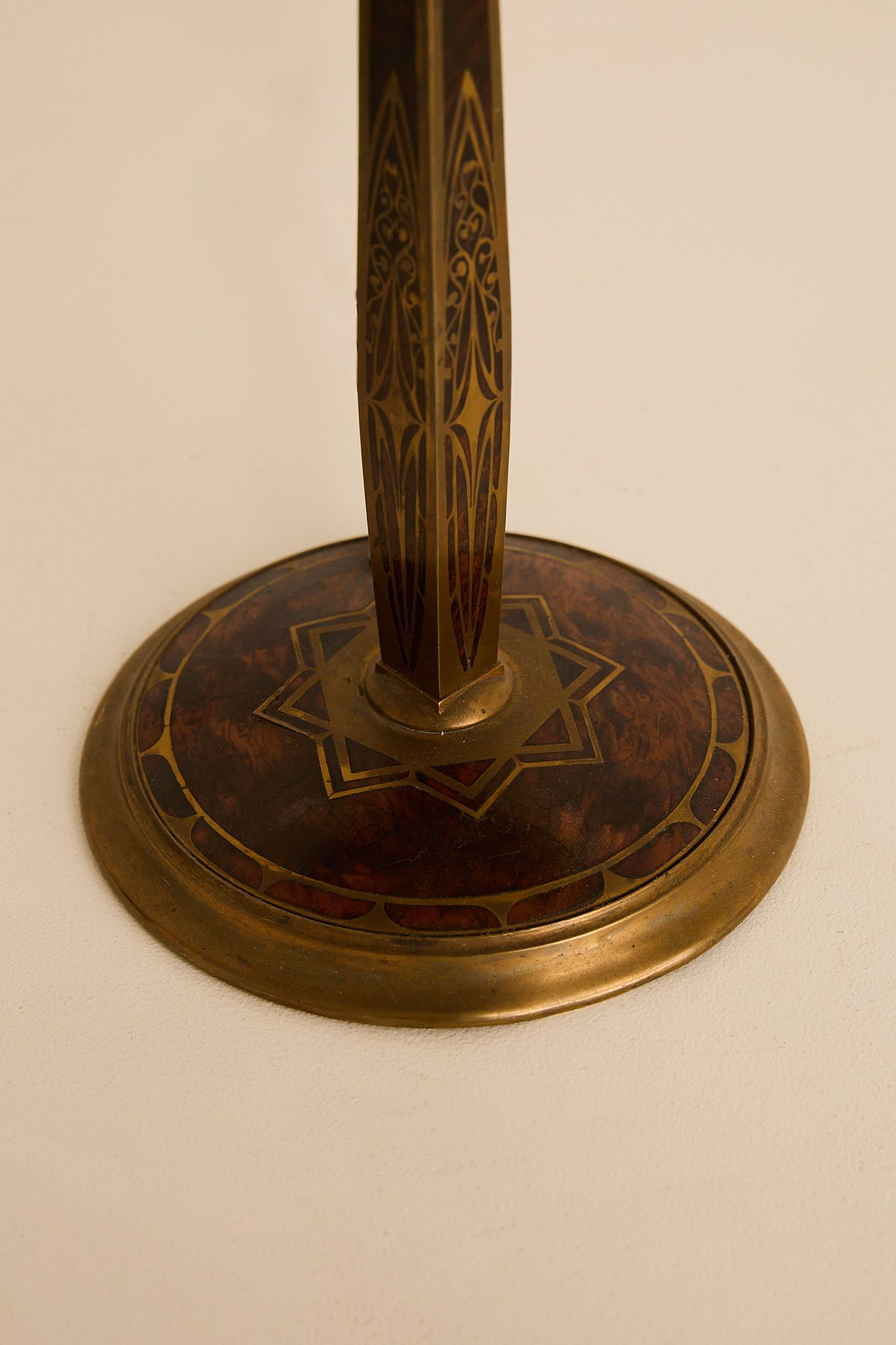 Austrian brass table lamp from the early 1900s, adorned with decorative details throughout.